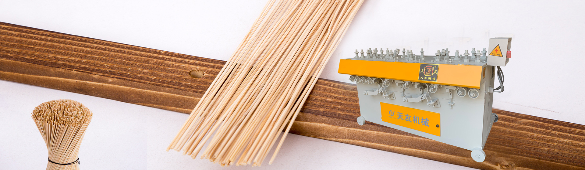 本廠生產的“天友”牌竹木兩大系列機械產品,品種齊全,包括(竹木機械、重竹設備、竹筷成套機械、牙簽成套機械、刨篾機、包裝機、竹地板成套設備、竹涼席成套設備、砂光機、破竹機、拉絲機、精刨機、帶節雙生筷、天削筷機械等) ,結構新穎,質量上乘,以完善的售后服務體系深受客戶的好評。
